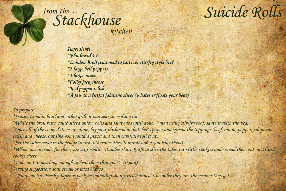 15. When you have a chance could you please add Smom and or Hadley’s spring roll type things? Thanks a million for these and all the literary yumminess you have given us. I’m still mentally crying over the death of the infinite series but the other stories ease the pain… and i’ll hold out hope that, like a vampire, the death is only temporary rather than a stake making it final 😉