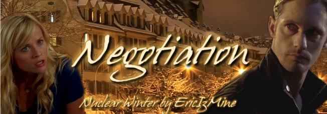 “What part of my initial cooperation confused you? I don’t need this shit, you know that. I don’t need the drama. I don’t need to uproot my life so that you can have a Hallmark moment with a Pam who’s going to look at you like you’re a stranger because you aren’t her Maker. I offered to help you because I felt sorry for you. I sympathized for your loss. I wouldn’t be able to live with myself if turning you down kept you from her… I guess what confused me was that I wanted to do the favor for another man. The other Eric I met was grateful I had something he could wear and I let him explain why he was in my house before I could call the police… You basically asked what Pam’s ransom was because I couldn’t possibly be capable of goodwill. Do you realize how fucking offensive that is? And you didn’t just do it once. You did it three times and managed to imply that I was a gold-digger in the meantime. You are not the man I met last month…”