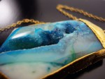 Lindy took the chain from him and while she pinched the clasp, a green stone swung back and forth. A cross-sectioned geode with an iridescent center.